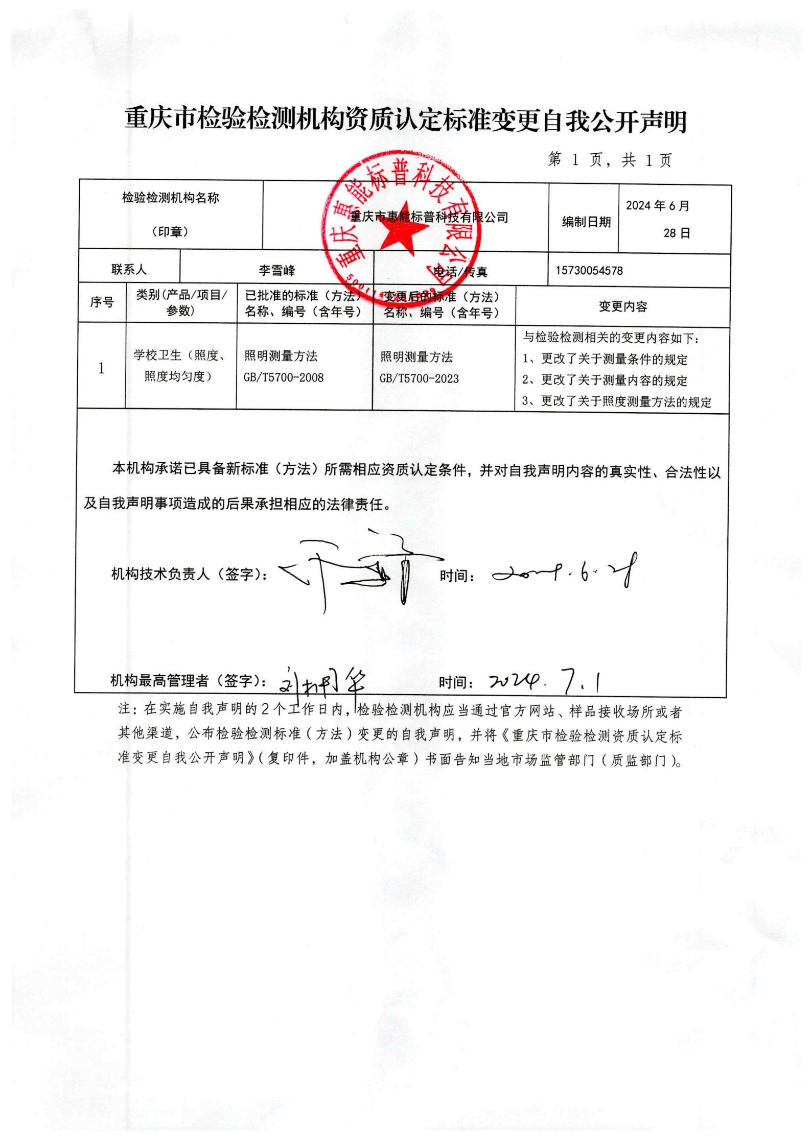 方法变更的自我声明