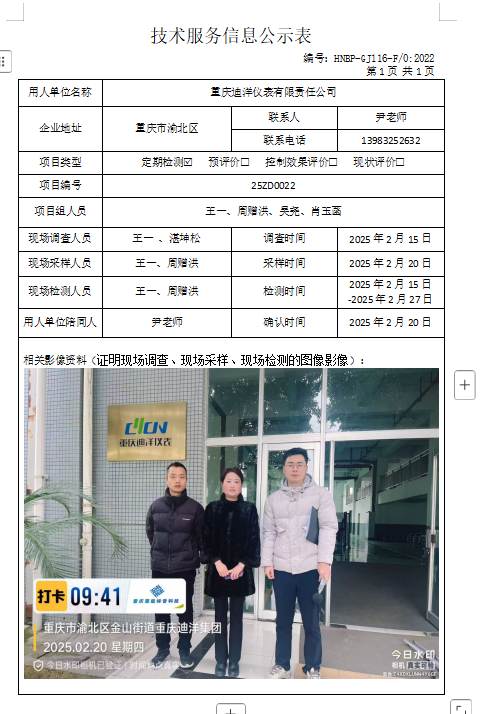 重庆键英液压机电有限公司定期检测项目公示...