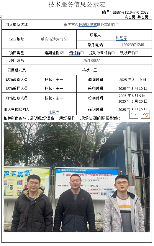 职业卫生评价项目公示
