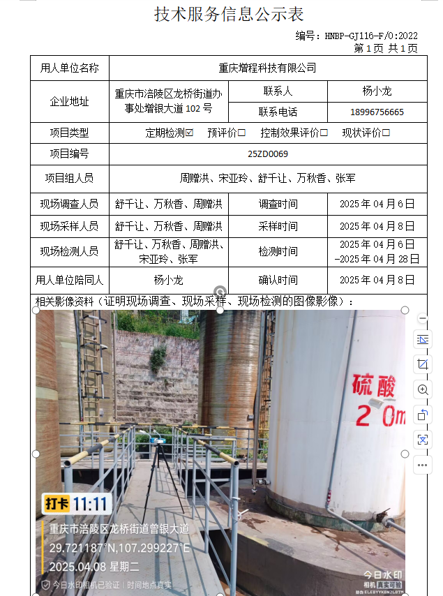 重庆金珈玉建筑工程有限公司定期检测项目公...