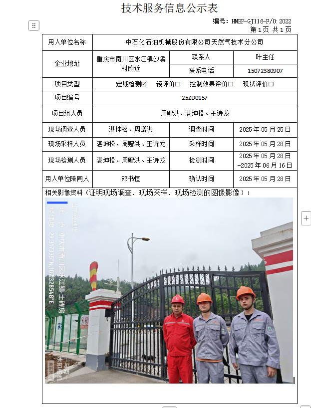 中石化石油机械股份有限公司天然气技术服务分公司定期检测项目公示