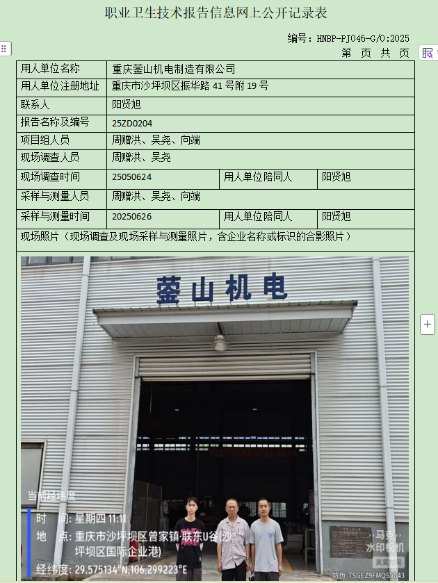 重庆蓥山机电制造有限公司定期检测项目公示